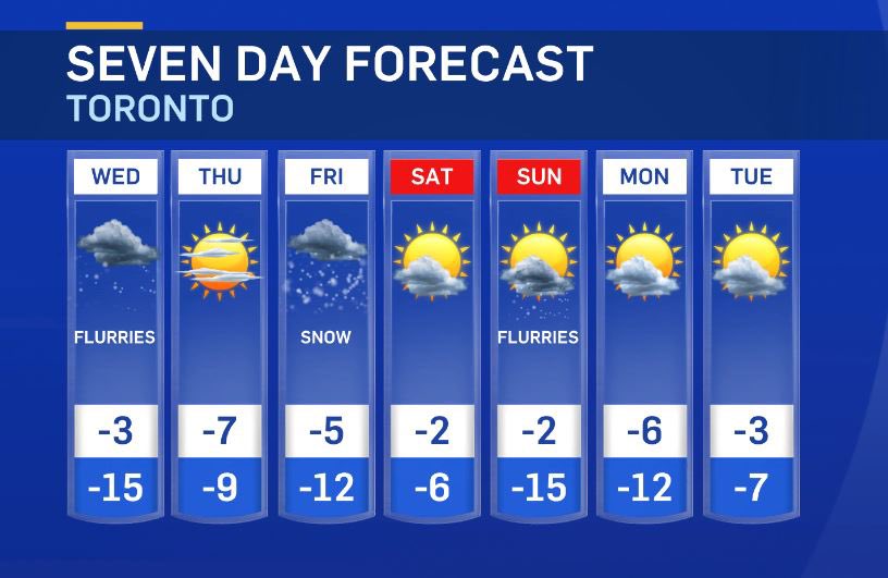 See more current weather. CP24 - Torontos Breaking News for the GTA with CP24 Breakfast Sports Video Traffic Times and Weather and more. Reviewing the forecast for Toronto Over the next 14 days and the average daytime maximum temperature will be around -3C with a high for the two weeks of 5C expected on the morning of Wednesday 23rd.